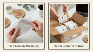 Choosing the right materials is key. Poly mailers or thin cardboard boxes keep weight down while still protecting the coasters. Adding only minimal fill material, such as crinkle paper or bubble wrap, balances protection and total weight.
